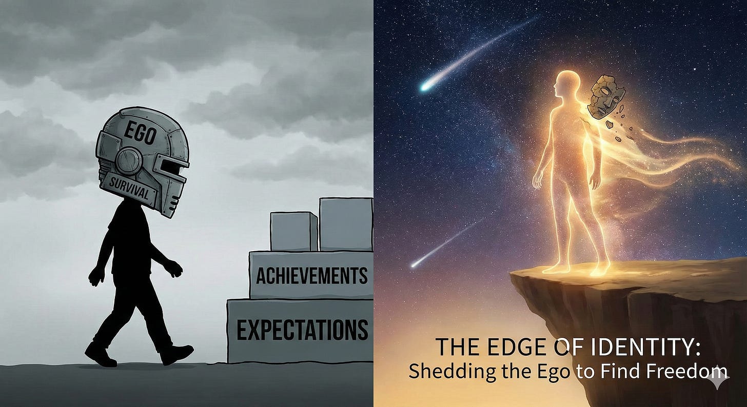 To let go of your identity and ego is a scary thing to do, but once done, you are born again new. Everyone has to live two lives on the planet earth. One life is what you think you are (which is a derivation of what you think people think you are). And the next life is when you think nothing of yourself and just exist moment to moment, just experiencing life. Unfortunately, the negative cycle of ego and identities makes it extremely difficult to snap out of the cycle and be born again.