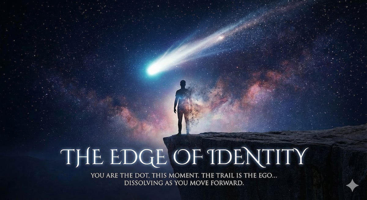 A comet flies in the sky. You see a dot and a trail. You are the dot, this moment. The trail is the ego… and it is dissolving as you move forward.