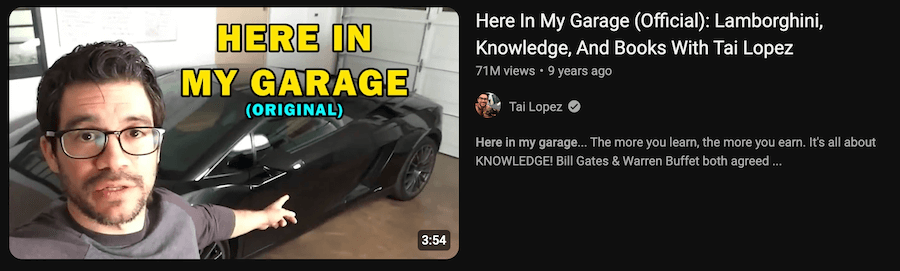 A few creators in the US are notorious for rubbing their “riches” on people’s faces. This includes Tai Lopez and his famous “here in my garage” video where he shows his Lamborghini first and then shows his book shelf and says that his books are way more valuable.